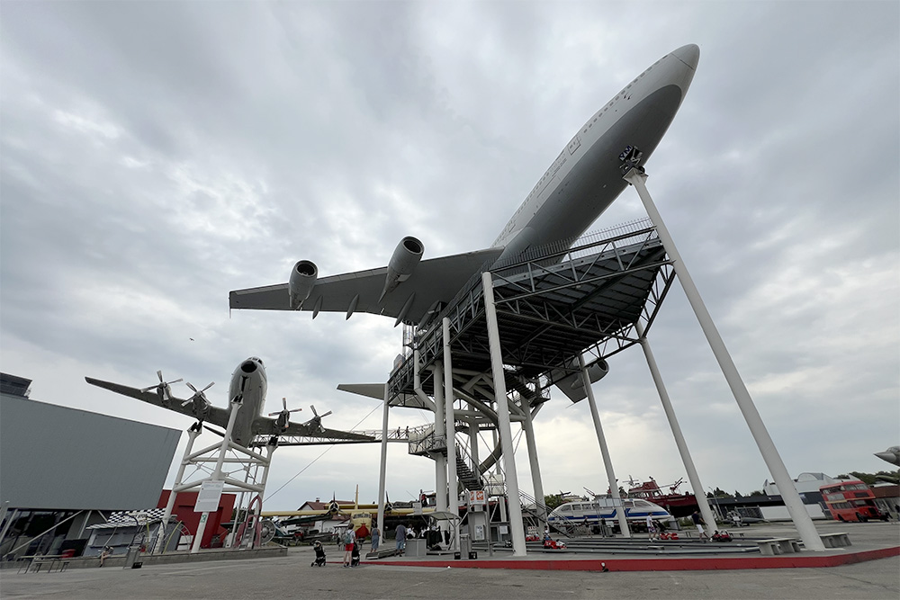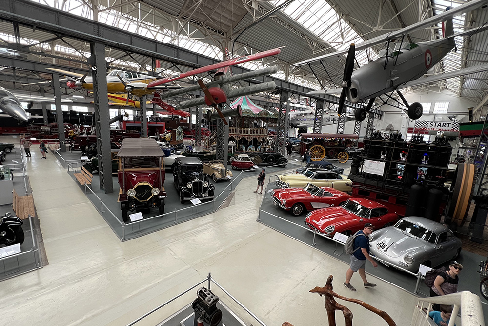 Un hall avec des voitures anciennes classiques avec des personnages en costumes d’époques et leurs malles, des motos de course, des camions de pompiers historiques, des machines à vapeur colossales, des instruments mécaniques, une immense collection d’orgues mécaniques … A l’extérieur de nombreux avions, dont le fameux Antonov.