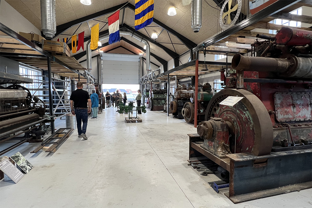 Pour arriver à Thyborøn, depuis le Nord, deux options : par le ferry ou par la route. Un grand parking où poser Kipi. Il y a de nombreux bâtiments et hangars. Visite d’un premier hangar consacré aux moteurs « Motorrum », qui expose d’anciens moteurs de navire, dont un fabriqué à Paris. Il y a aussi une machine à tisser les filets de pèche.